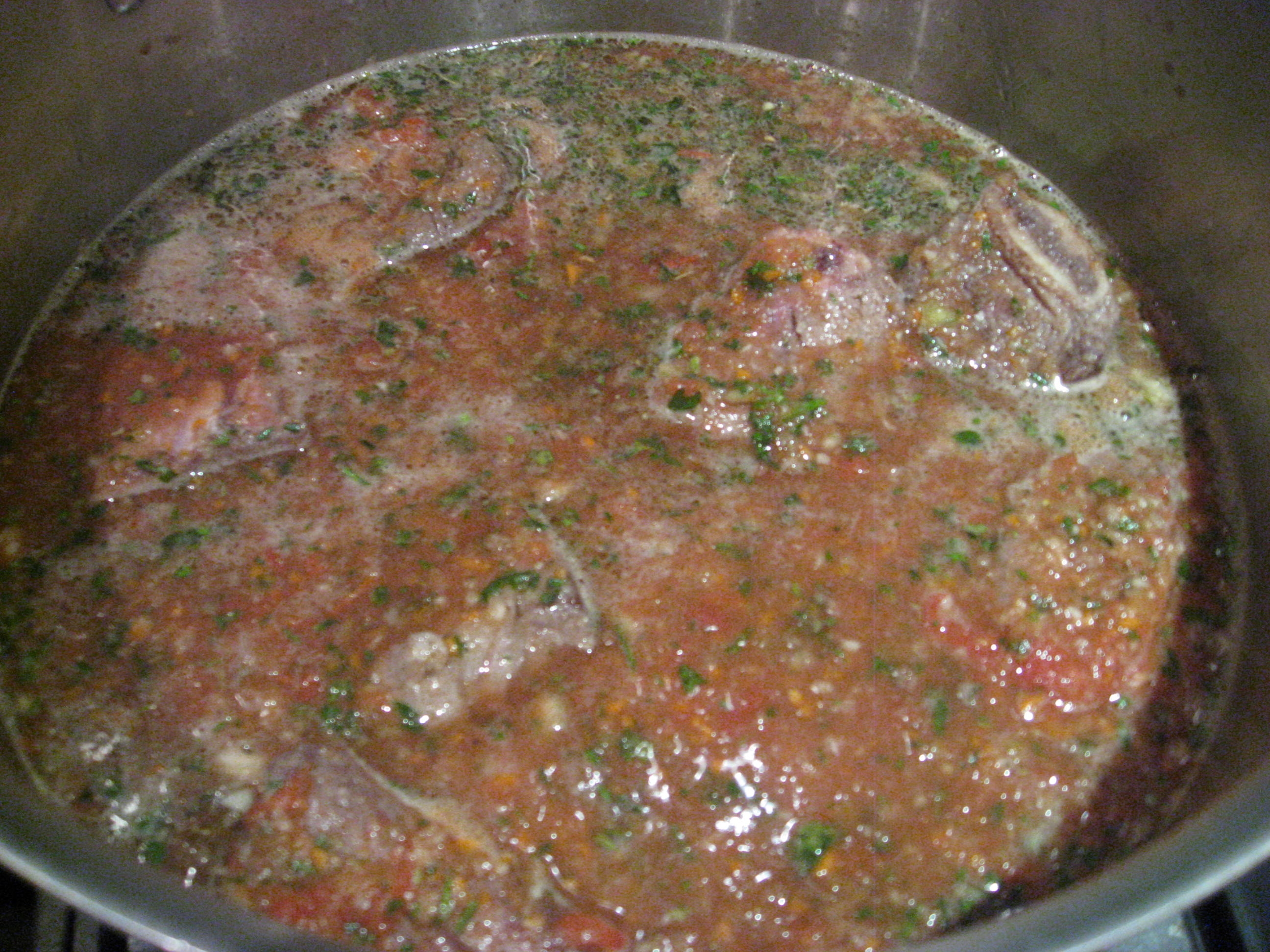 - Once the short ribs are browned, carefully add the mixture from the food processor to the pot. Add the rosemary, thyme, oregano, bay leaf, beef broth, and wine. Bring the mixture to a boil. Reduce the heat and simmer, covered, for 1 hour and 15 minutes. Remove the lid and simmer for another hour and a half, stirring occasionally.