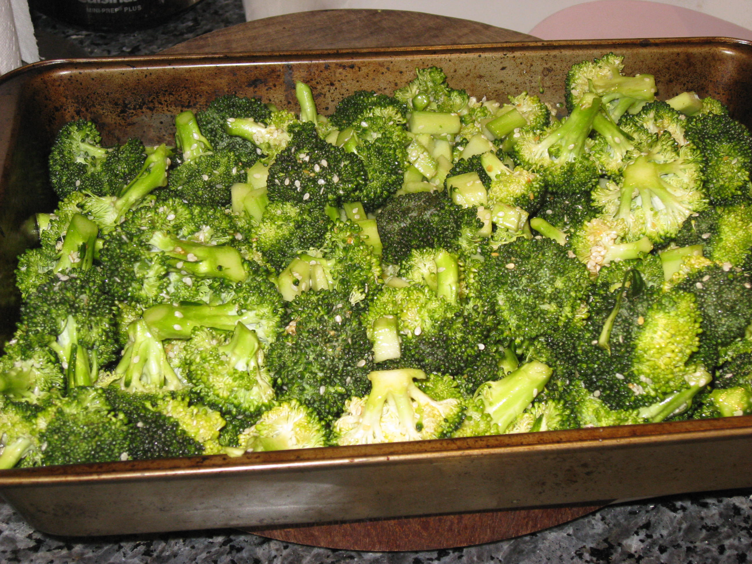 Roasted Garlic & Red Pepper Broccoli – https://marisashealthykitchen.com/2009/06/01/chicken-breasts-provencal-with-roasted-garlic-red-pepper-broccoli/