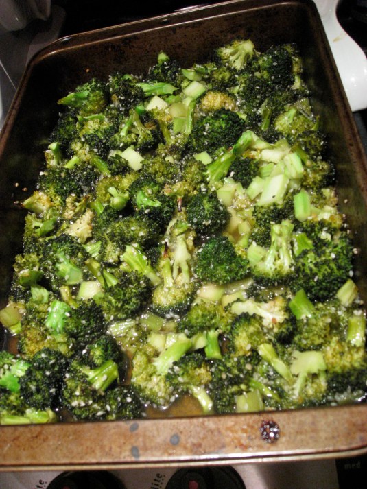 I love roasted veggies! I decided to go more the sweet route with the broccoli tonight. The result was deelish crispy and sweet! Roasted veggies are super easy. Prep the veggies, toss with some seasonings, pop in the oven and prepare the rest of dinner while they are roasting away. Perfect!