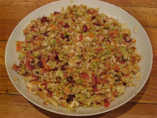 Place all ingredients into a large food processor and pulse-chop until chopped. ENJOY!!