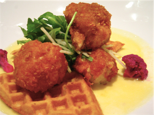 Cauliflower - buttermilk battered cauliflower, waffles,horseradish, wild arugula