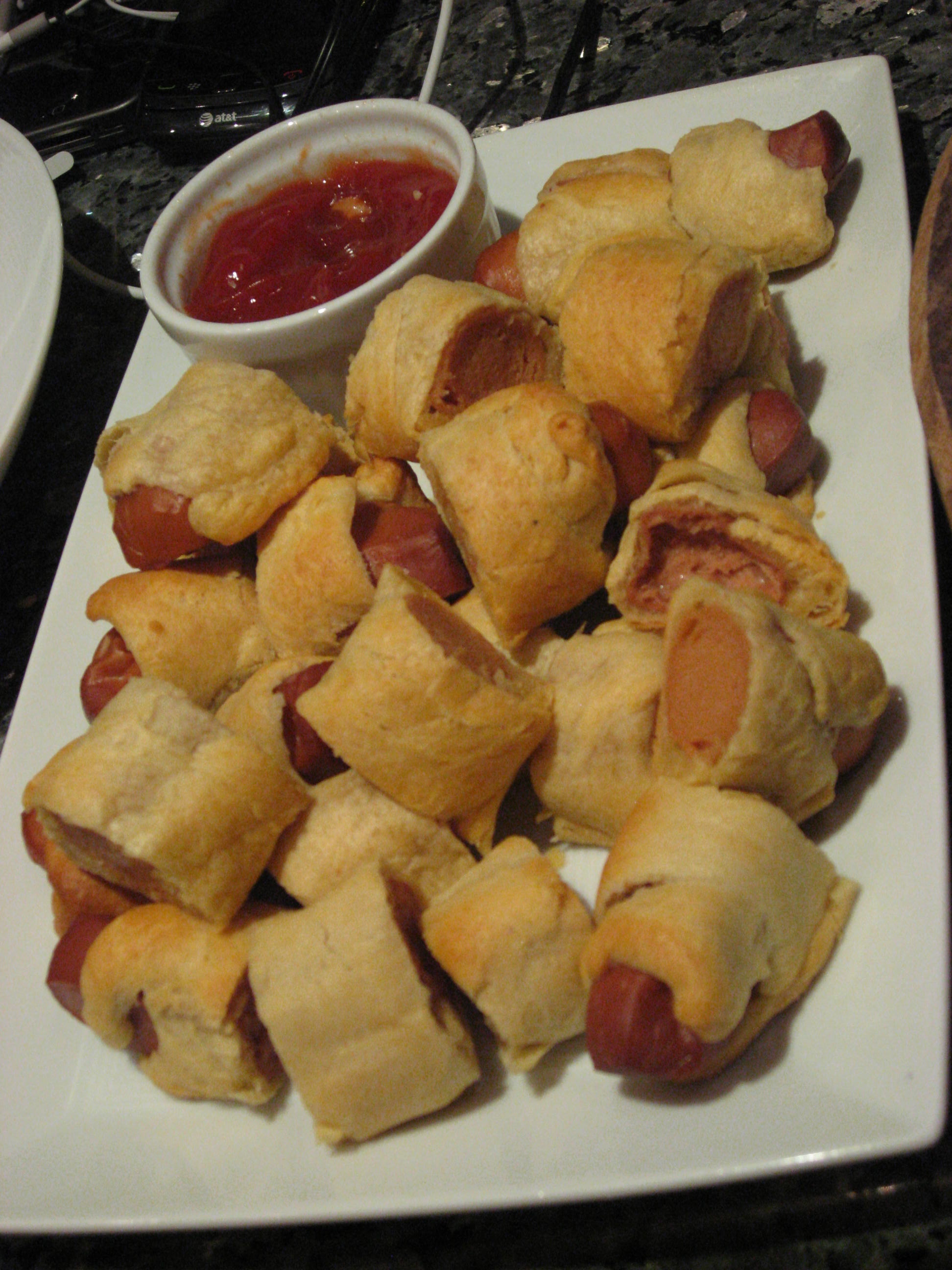 Separate the dough into the pre-cut triangles. Roll each triangle around each vegan hot dog, making sure the dough is even till the ends. Slice each hot dog into 3 or 4 pieces. Place on a parchment paper lines baking sheet and bake for 15-20 minutes till the pastry is golden.