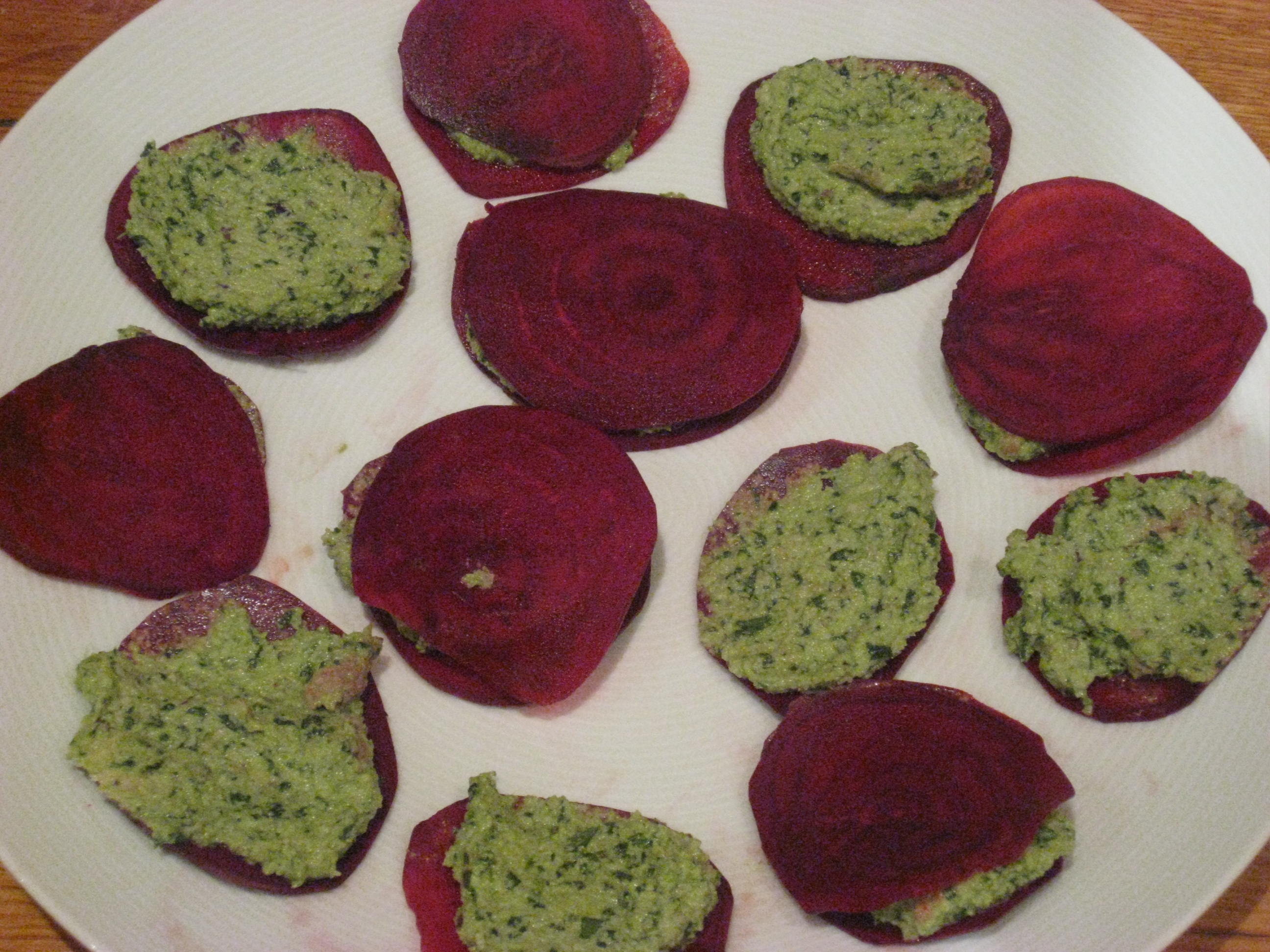 This was soooo good! I made the complete recipe for the crust and halved the rest as I knew there was never anyway we would eat all of this deliciousness. But I figured we could use the crusts for other recipes as they are very versatile. I love everything Pure Food and Wine and can’t wait to check out Sarma’s new cookbook, Living Raw Food! But this is recipe is from Raw Food Real World. All their recipes are pretty complicated but I am guessing that 99% of them are amazing! Due to the complexity level and the gourmet heaviness of some of the foods they are not everyday recipes for us. But when we make them we sure love them! I could see this dish being served at a fancy Middle Eastern restaurant or you can make them bit sized and serve them as hor o’dourves!!!! How fun!! So deeelish! I loved the use of Za’atar (a Middle Eastern spice blend of sumac, sesame seeds and the wild Syrian hyssop plant) in this recipe. I had bought some the last time I was in Israel and this was the first time I got to break it out and use it. Ahhhh… 🙂 The crusts were delicious and the hummus was the best raw hummus I have ever had! Such a great recipe! You could always break this recipe down and use just one component when you need it.