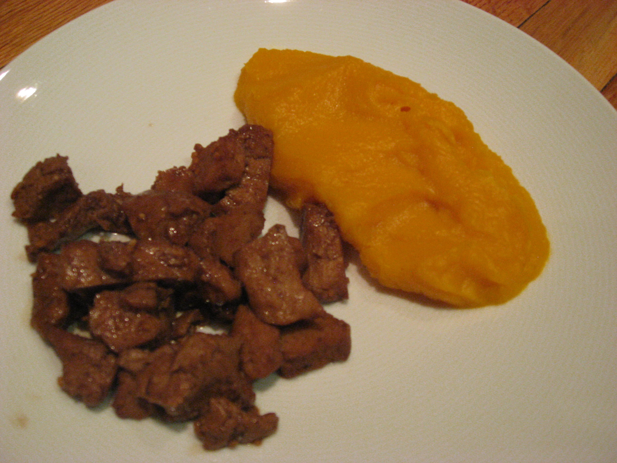 Heat 1/2 cup water and 1 teaspoon tamari in a large pot. Add onion, pepper, and garlic and cook until onion is soft and translucent. Add remaining 1 cup water and 2 teaspoons tamari, tomato sauce, sugar, chili powder, vinegar, peanut butter, mustard, and seitan and cook over medium heat, stirring frequently, for 10 minutes. Spoon the cooked polenta into bowls and top with the sauce. Enjoy 🙂