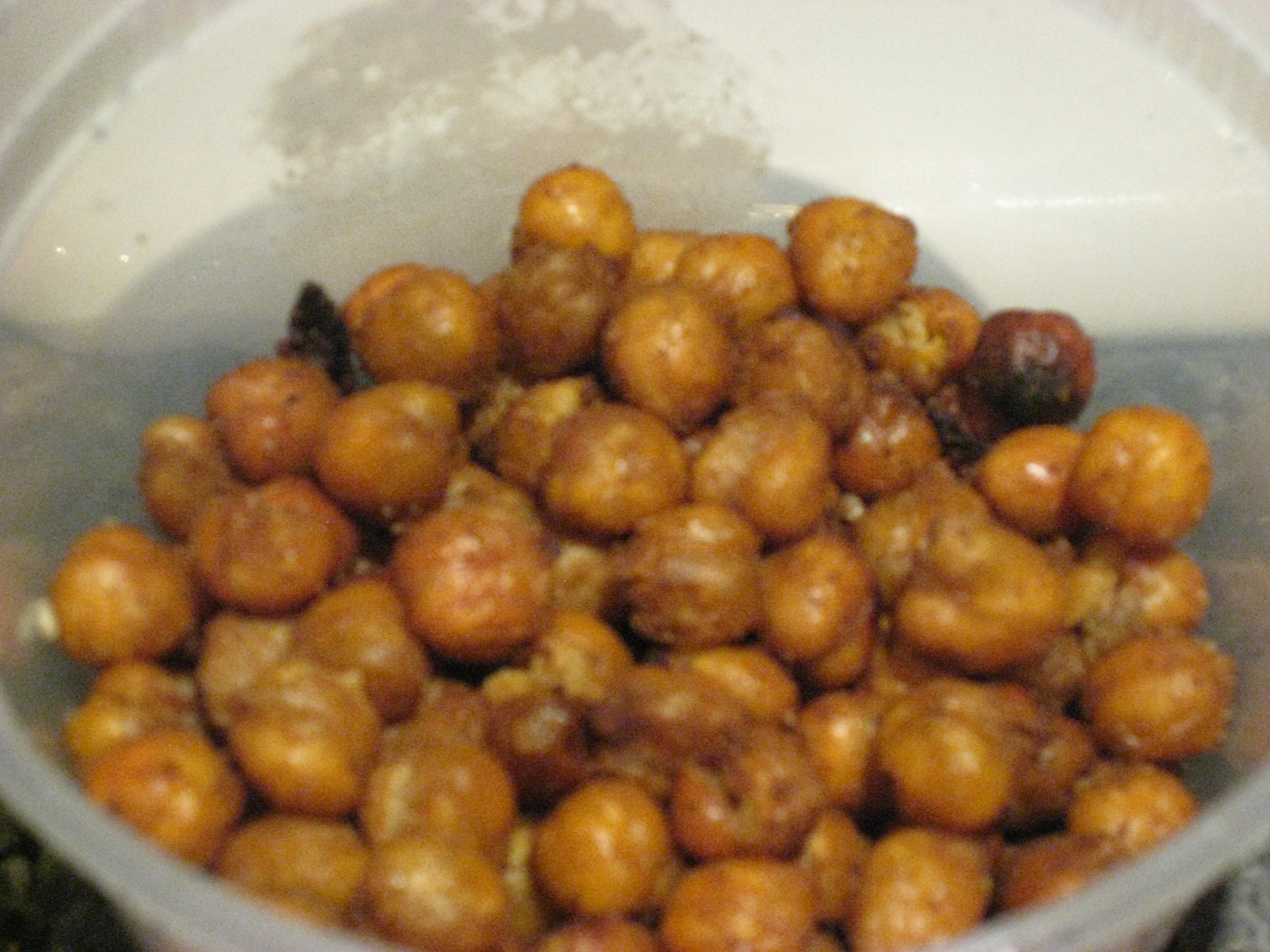 Put the lid on the bowl and place it in the fridge for a minimum of an hour so the dough firms up a bit. (makes it so much easier to work with!) Take tablespoon size pieces and roll into balls.