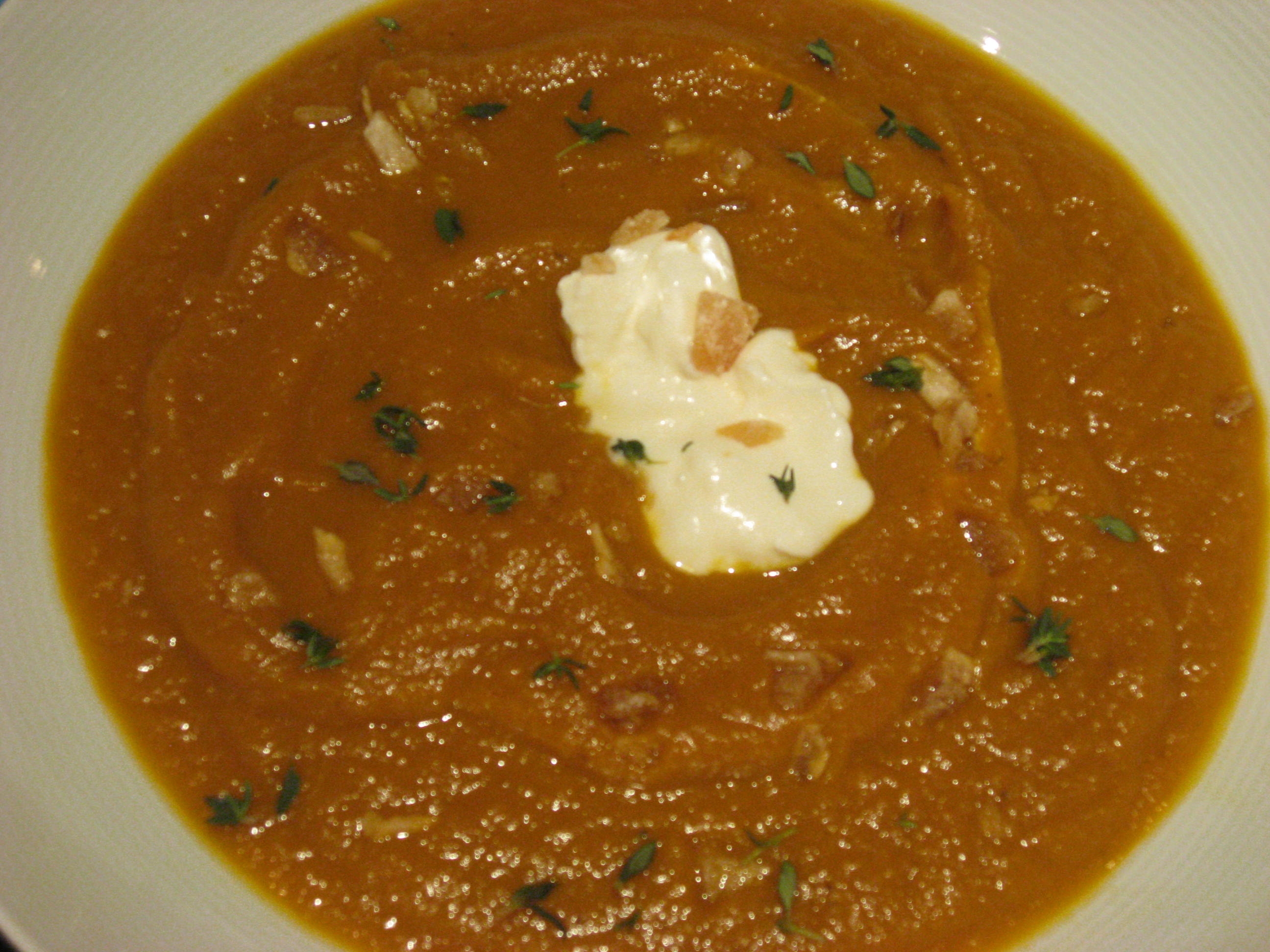 - Dollop with sour cream, if desired, and sprinkle with crystallized ginger and chopped thyme leaves.