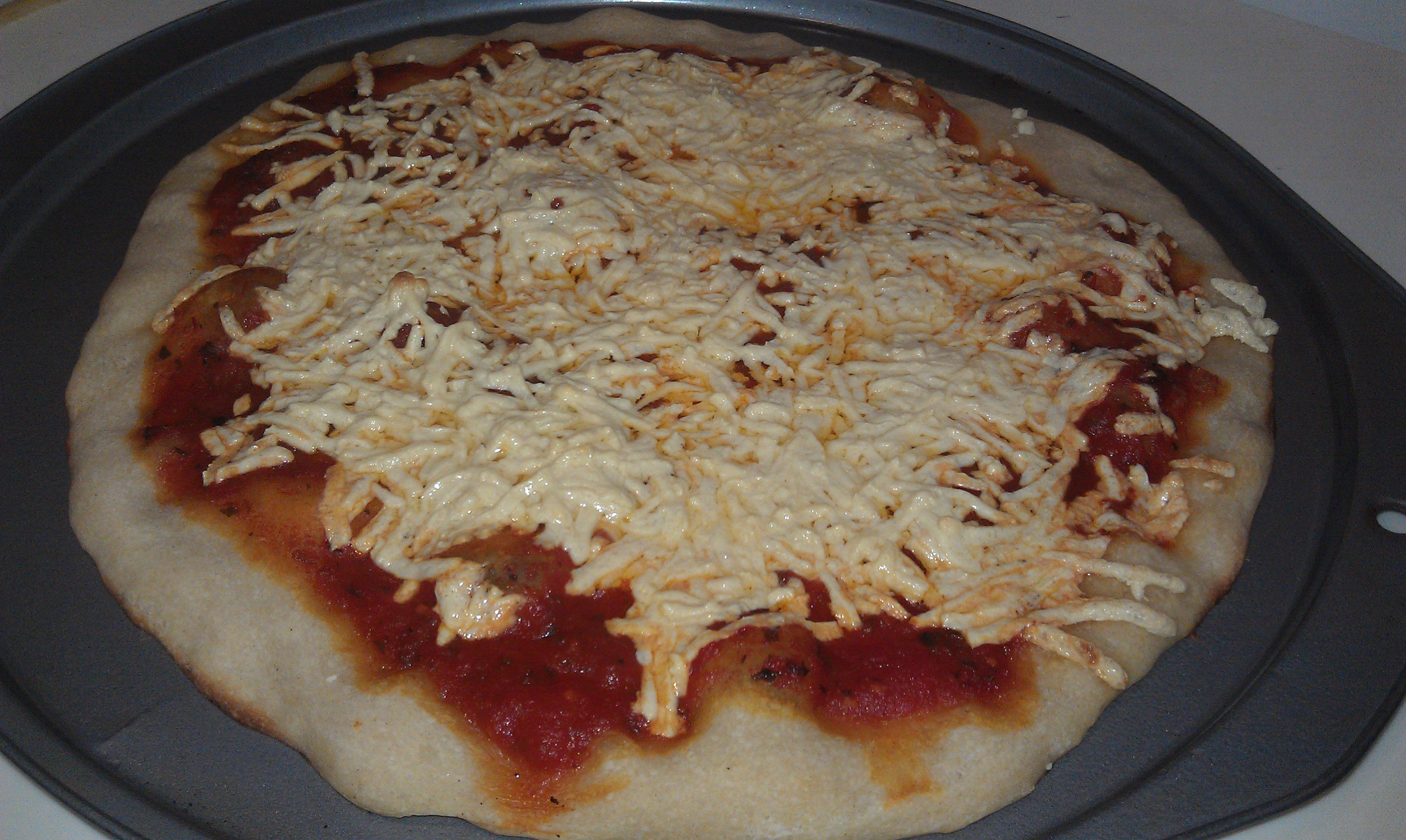 Sometimes it is easy to buy dough and tomato sauce quickly whip up a pie at home, but if you are interested in making your own dough, here is a great recipe! My mom made the dough and I added the homemade sauce (thanks mom!!). It was really very very good!